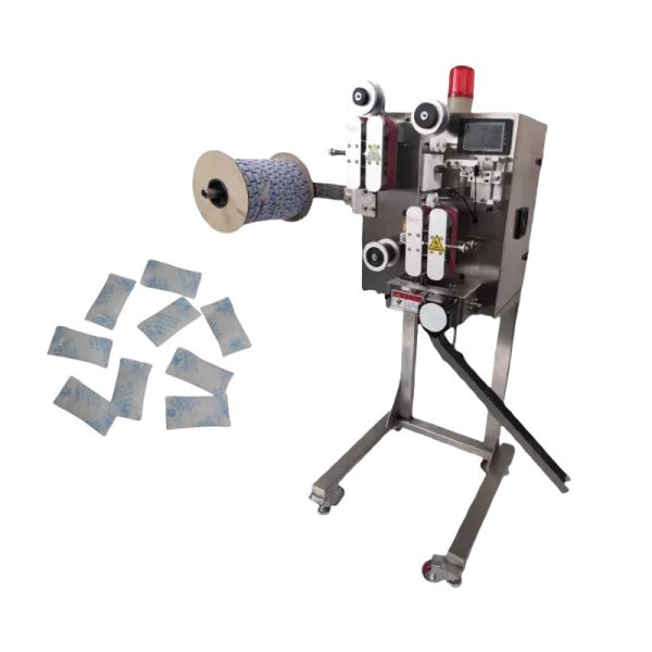 The back-sealed desiccant bagging machine is an intelligent device that integrates automatic metering, packaging, and testing. It is designed for efficient packaging of desiccants (such as silica gel, montmorillonite, activated carbon, etc.).